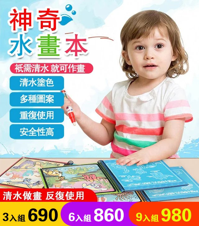 2分鐘前寶寶創意魔法塗鴉水畫本 - 三入組$690(每入230)